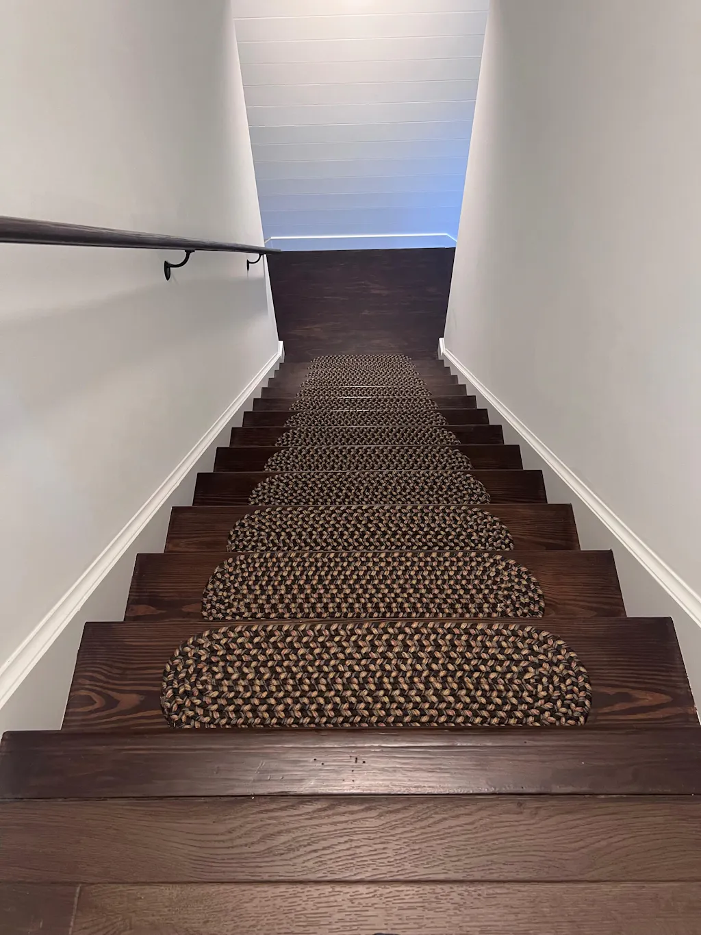 Classic pattern Easy Living Stair Treads in natural earth tones combines tradition with the subtle look of tweed. Designed to be used indoors or out, this family-friendly stair tread offers the perfect solution to your styling needs. Constructed of softly textured polypropylene cover yarns that stand up to everyday demands with crush-resistant knitted filling that provides cushiony support.